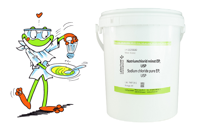| Натрия хлорид, pure EP, USP | | | | Торговая марка: NeoFroxx Артикул: LC-4524.3 Cas-No: 7647-14-5 Качество: фарм., EP, USP Брутто-формула: NaCl Молекулярная масса: 58.44 г/моль Фасовка: 25 кг | | | | Анализ: 99.5 - 100.5 % Температура плавления: 804°С Точка кипения: 1.413 °C Хранение: RT Растворимость: в воде 36 г/100 мл (при +20°C) | | | | Данный продукт соответствует требованиям Европейской фармакопеи (EP) и Фармакопеи США (USP). | | | | Москва, 115232, Каширское шоссе, д. 3, корп. 2, стр. 4/9, Бизнес-центр "Сириус Парк" +7 (495) 640 4192, (499) 682 6555 www.chimmed.ru | | | |